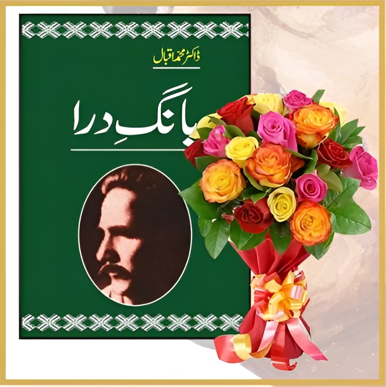 Allama Iqbal Poetry Collection Book (Assorted) with Mix Roses Flower Bouquet 24pcs
