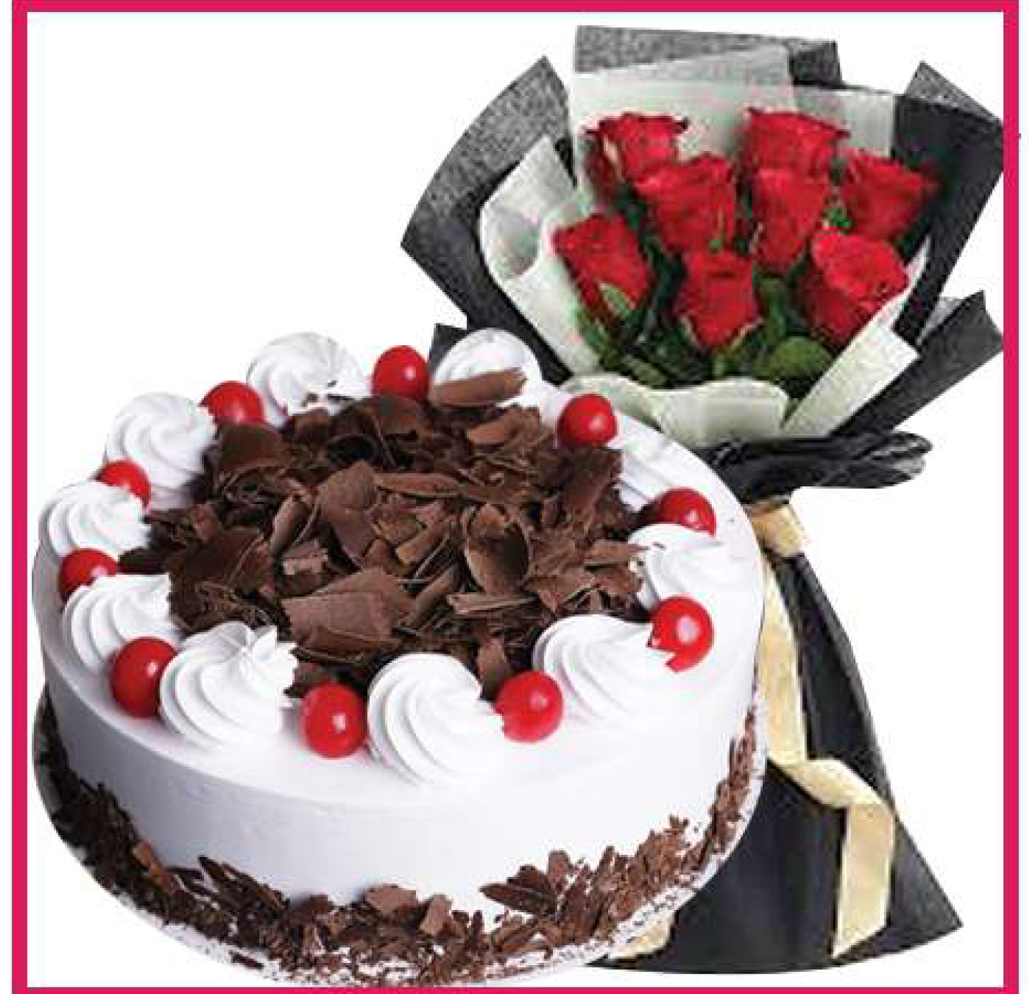 Be the first to review “Black Forest Cake 2lbs & Red Roses Bouquet 12pcs”