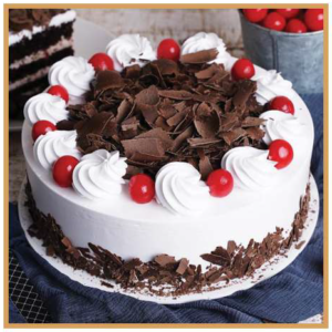 ₨ 3,600 – ₨ 4,800Price range: ₨ 3,600 through ₨ 4,800The Black Forest Vanilla Cake Is A Sweet Desert That Consists Of Layers Of Chocolate Sponges With Thick Whipped Cream Spread Smoothly In Between. The Cake Is Nicely Decorated With Dark Chocolate Shavings On Top Of Vanilla Icing, Creamy Vanilla Swirls And Maraschino Cherries.